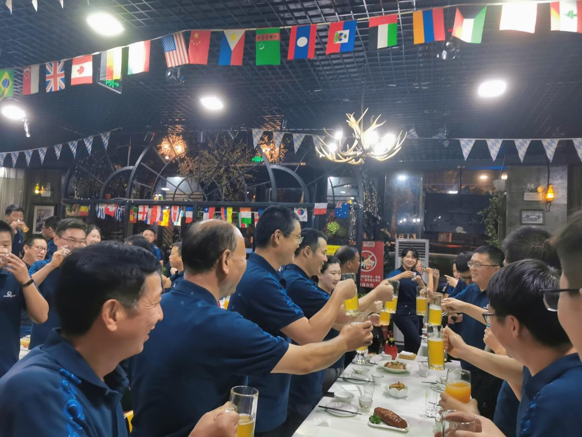 19:38分正式進(jìn)入團(tuán)餐晚宴環(huán)節(jié),歐力杰大家長(zhǎng)總經(jīng)理陳總帶頭,其他核心管理層先后逐一發(fā)出了祝酒詞,晚宴上全體家人推杯換盞,熱鬧非凡。