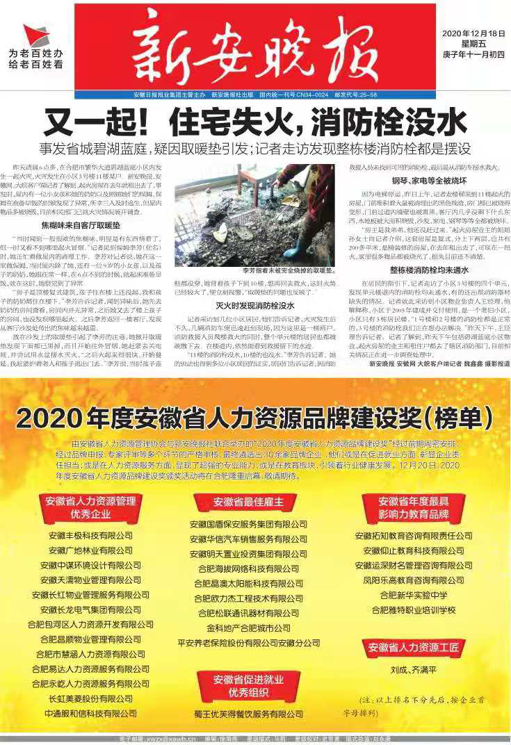 12月20日下午16點,在合肥方萊國際大酒店3樓1號廳內(nèi),高朋滿座,嘉賓云集,由安徽省人力資源管理協(xié)會聯(lián)合新安晚報舉辦的安徽省人力資源品牌建設獎頒獎晚會在此隆重舉行。