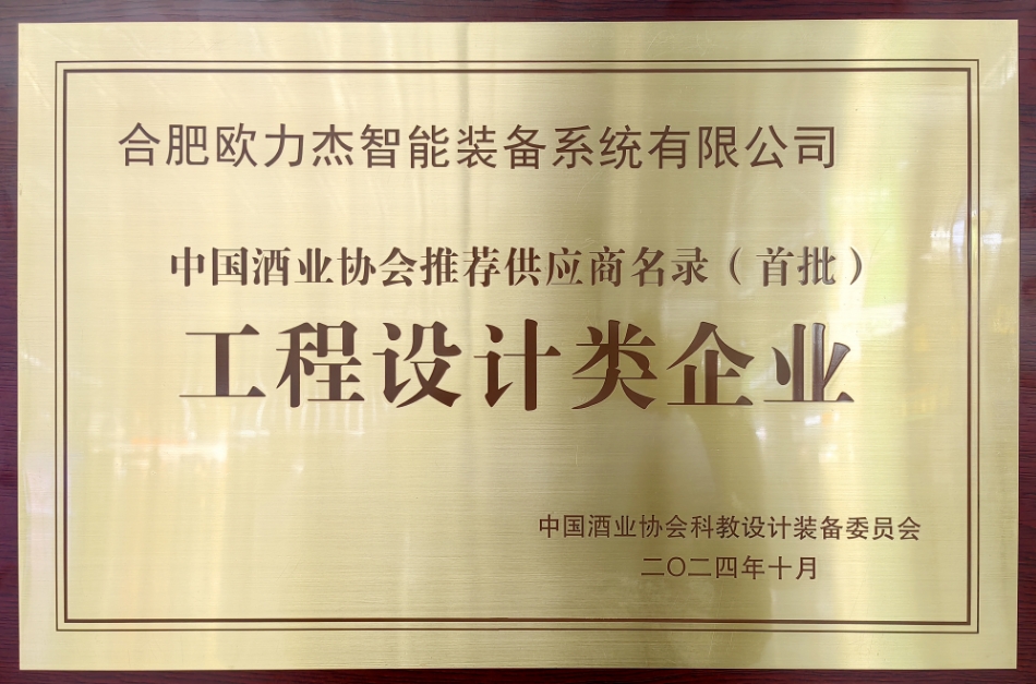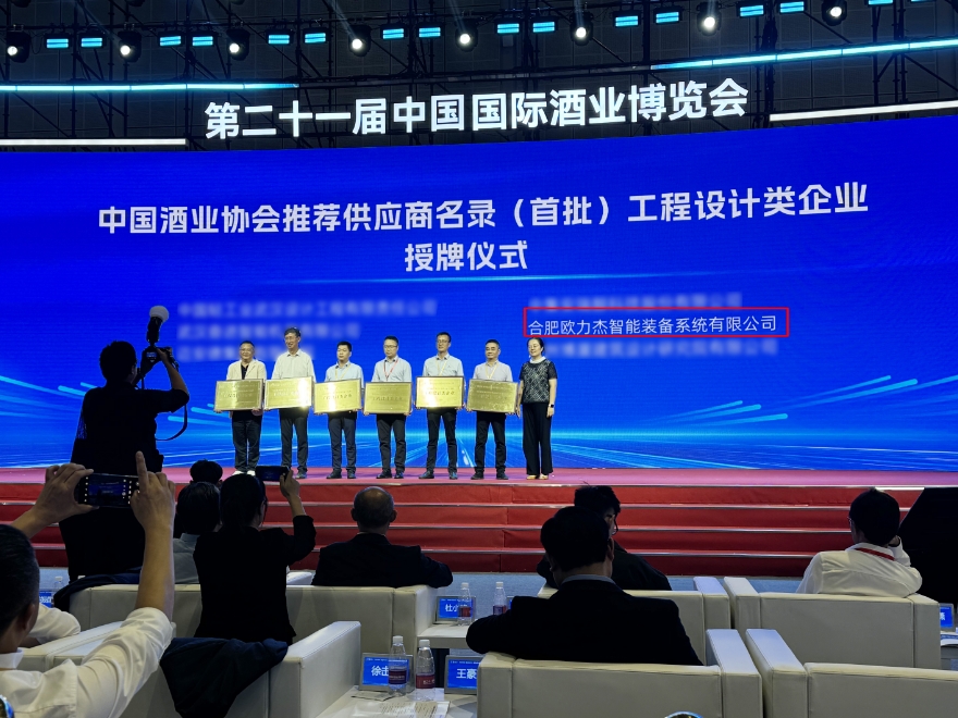 合肥歐力杰智能裝備系統(tǒng)有限公司榮膺“中國(guó)酒業(yè)協(xié)會(huì)推薦供應(yīng)商(首批)工程設(shè)計(jì)和設(shè)備生產(chǎn)類(lèi)企業(yè)”雙項(xiàng)殊榮