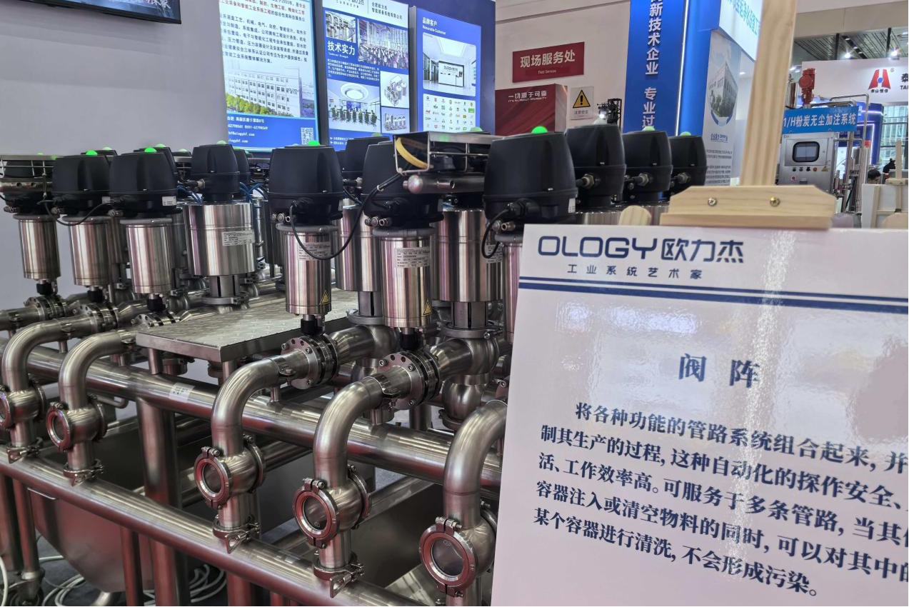 展臺上,合肥歐力杰帶來的智能閥陣系統(tǒng)吸引了眾多專業(yè)觀眾駐足。該系統(tǒng)通過自動控制的雙座閥、單座閥等有序組合,構(gòu)建了一個高度靈活和安全的流體控制中樞。它能夠橫向連接多種介質(zhì)管路,縱向連接多個生產(chǎn)容器,實現(xiàn)對復(fù)雜生產(chǎn)流程的集中、精準(zhǔn)控制。